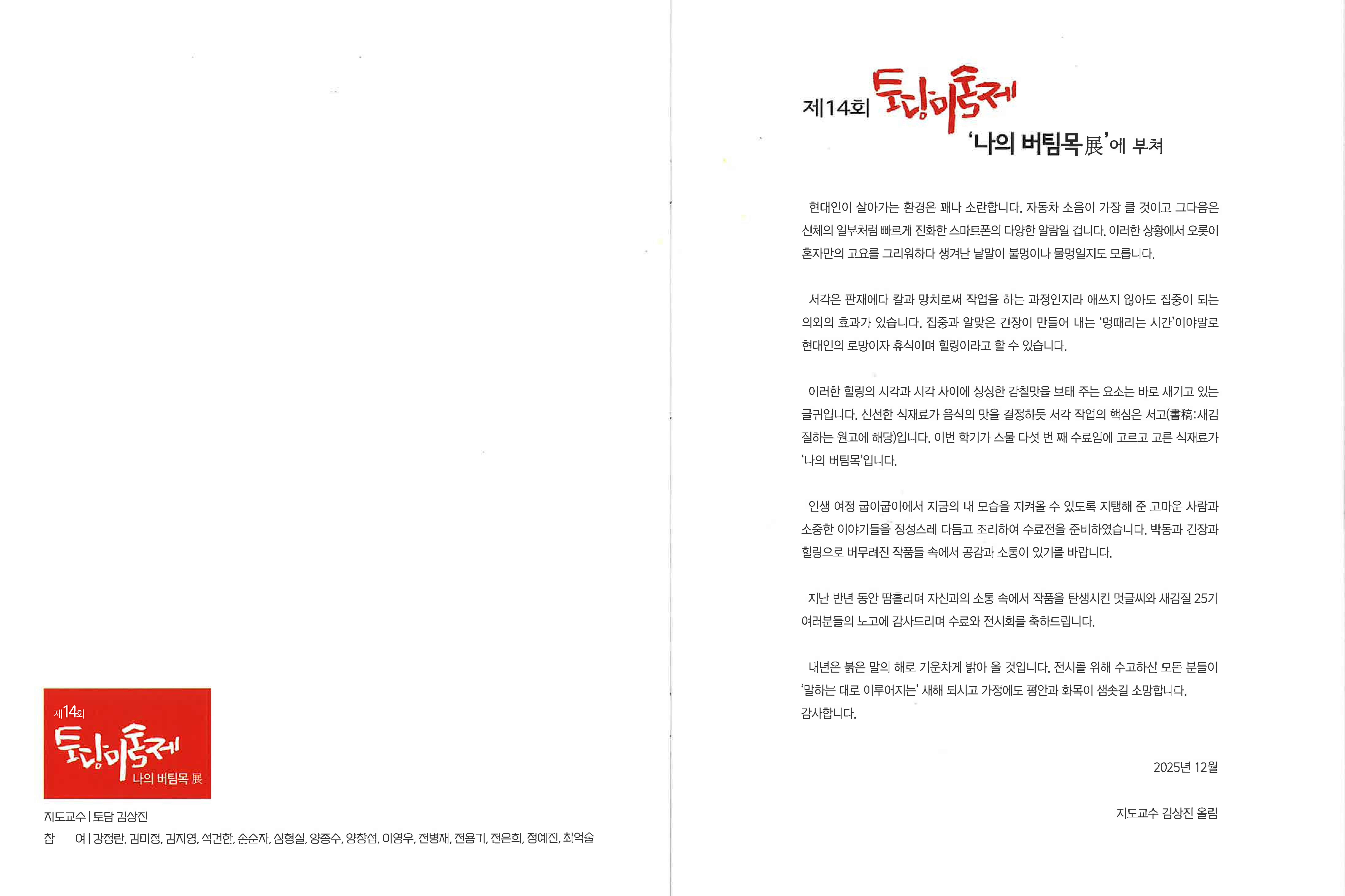 | 2025-2학기 김상진 강사님 멋글씨와 새김질 수료전 [제 14회 토담미술제] | |||||