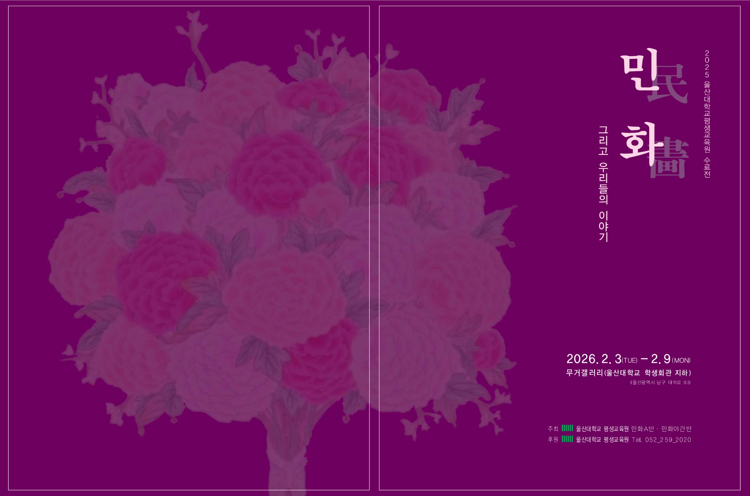 2026. 2. 3.(화) ~ 2. 9.(월) 10:00~18:00 무거갤러리(울산대학교 학생회관 지하) 위 기간동안 감상 가능하니 많은 관심 부탁드립니다. 울산대학교 평생교육원 |
