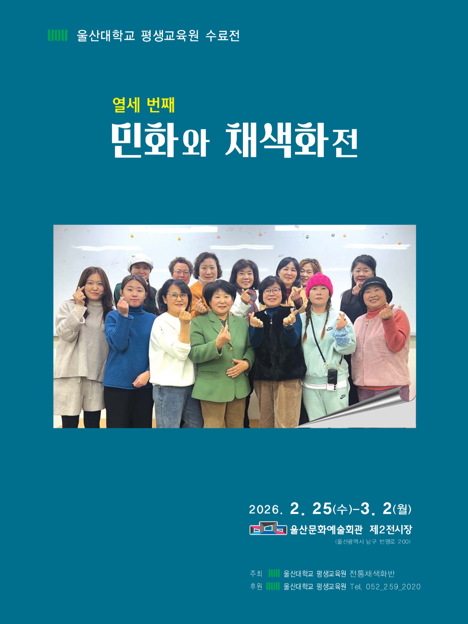2026. 2. 25.(수) ~ 3. 2.(월) 울산문화예술회관(제2전시장) 울산광역시 남구 번영로 200 위 기간동안 감상 가능하니 많은 관심 부탁드립니다. 울산대학교 평생교육원 |