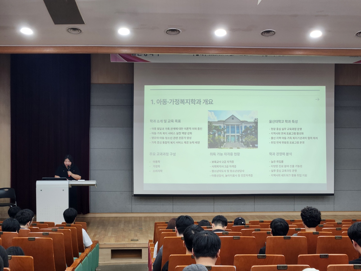 2025년 9월 22일(월), 1학년 공공인재현장이해 수업에서 '영유아아동청소년 현장에 대한 이해' 특강을 진행했습니다. 중구육아종합지원센터의 이현주 센터장님께서 진행해주셨습니다. |