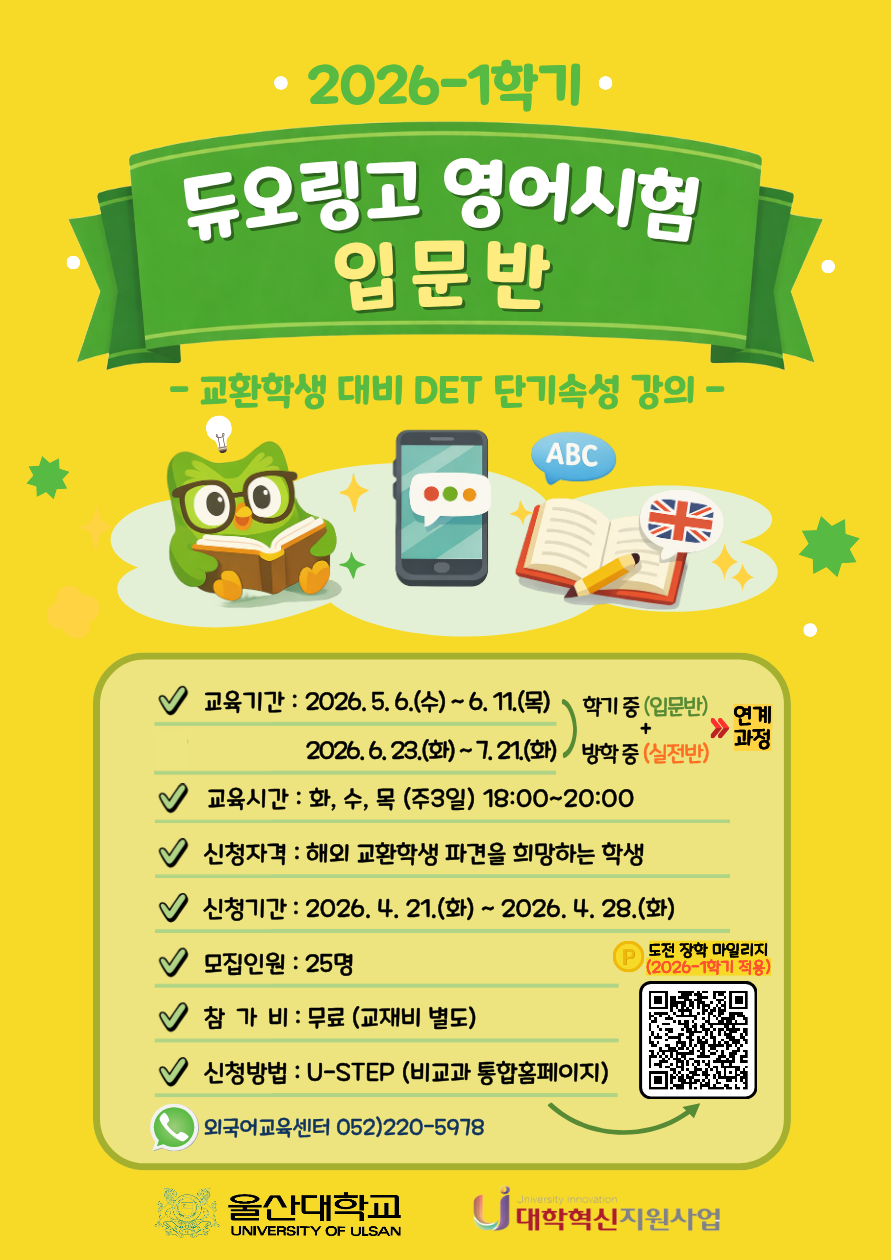2026-1학기 DuoLingo English Test 입문반 수강생 모집