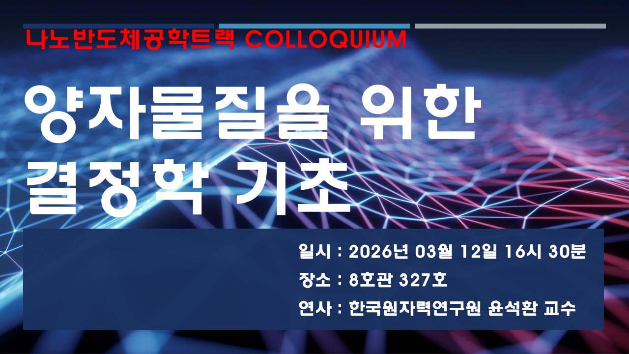 나노반도체공학트랙 Colloquium 2026년 03월 12일 한국원자력연구원 윤석환 교수님